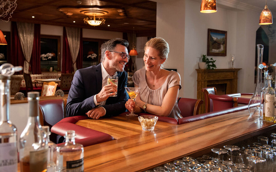 Mit anderen Gästen ins Gespräch kommen, Urlaubsbekanntschaften machen und sich einen erfrischenden Drink schmecken lassen: Unsere Bar in Hintertux ist ein Platz des Austausches. In stil- und stimmungsvoller Atmosphäre findet man sich hier tagsüber und abends immer gerne ein, um hervorragende Cocktails, Spirituosen und Weine zu genießen. Letztere stammen größtenteils von heimischen Winzern und werden durch internationale Klassiker ergänzt. Insgesamt dürfen wir Ihnen eine Auswahl aus etwa 140 Positionen anbieten. Besonders stimmungsvoll wird es, wenn im Rahmen unseres Wochenprogramms für Hotelgäste regelmäßig Weinverkostungen an der Bar stattfinden. Begleitet von fachkundiger Erklärung und gerne auch musikalischer Umrahmung, laden wir Sie ein, neue Lieblingsweine zu entdecken. Über die aktuellen Termine informieren wir Sie direkt im Hotel. Unser aufmerksames Bar-Team sorgt dabei wie immer für beste Unterhaltung und perfekte Betreuung.