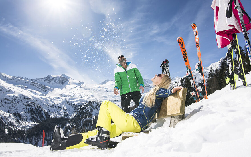 Herrlich ist aber auch ganz ehrlich die Rast. Einfach mal an einer der gemütlichen Bergrestaurants Halt machen und kurz verschnaufen. Das Tuxer Fernerhaus auf 2.660 m oder die Panoramaterrasse 3.250 m eignen sich ideal dafür. Ein Liegestuhl in der Sonne, Beine ausstrecken, vielleicht etwas Warmes oder Gekühltes dazu, und Augen schließen. Oder natürlich in die Ferne schweifen. So lässt es sich aushalten. Wer sich gut erholt hat, schafft dann bis zum Liftschluss noch ein paar Kilometer. Dann schleicht sich langsam Müdigkeit in den Beinen ein und die Freude auf wohlige Wärme und feine Erholung im Alpenhof steigt. Der Vitalis SPA mit seiner Vielfalt an Verwöhn-Möglichkeiten für Körper und Seele lockt. Ebenso wie unsere mit 3 Hauben prämierte regionale Genussküche zum Tagesausklang. Nichts wie runter und rein in die gute Stube. Die Pisten sind am nächsten Tag wieder bereits für ausgefüllte Stunden beim Sonnenskifahren!