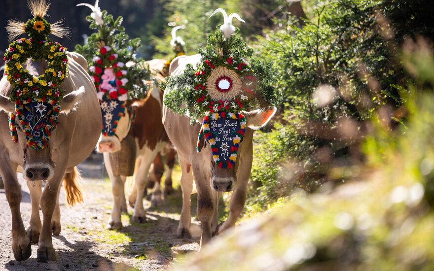 So schön der Sommer in Hintertux auch ist – irgendwann verspüren wir im Alpenhof trotzdem dieses leichte Sehnen im Herzen nach dem Herbst. Wenn die Blätter sich bunt färben, das Licht intensiver und golden wird, die Luft so herrlich erfrischt und die Natur zum Krafttanken beim Wandern lockt. Gleichzeitig geht der Herbst mit einigen Traditionen einher, die wir in Hintertux nach wie vor sehr schätzen und pflegen.
