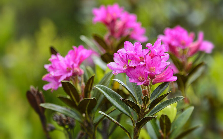 Wenn mich jemand fragen würde, welche Jahreszeit ich am schönsten in Hintertux finde, hätte ich ganz ehrlich keine Antwort darauf. Das liegt einfach daran, dass unsere Region im Zillertal immer ihren ganz eigenen Reiz ausübt. Ob im Frühling, im Sommer oder im Herbst: stets gibt es etwas, über das man staunen kann, das zum Erleben einlädt. In der Frühlingszeit bis Juni, wenn alles wieder aufblüht und wächst, freuen wir uns auf die wunderschöne Almrosenzeit. Diese Zeit ist so besonders, weil sie auch sehr kurz ist: Nur für wenige Wochen erblühen die Almwiesen in intensivem Rosa und Lila auf und kündigen den Sommer an. Die Natur setzt mit diesem farbgewaltigen Blütenmeer ein Zeichen der Lebendigkeit und Kraft, das weithin sichtbar ist. Sehr schön sind aber auch die blühenden Bergwiesen im Hochsommer, der intensive Duft nach würzigem Gras und Kräutern. Dann atme ich tief ein und aus, schließe die Augen und lausche den sanften Geräuschen des Bergsommers.