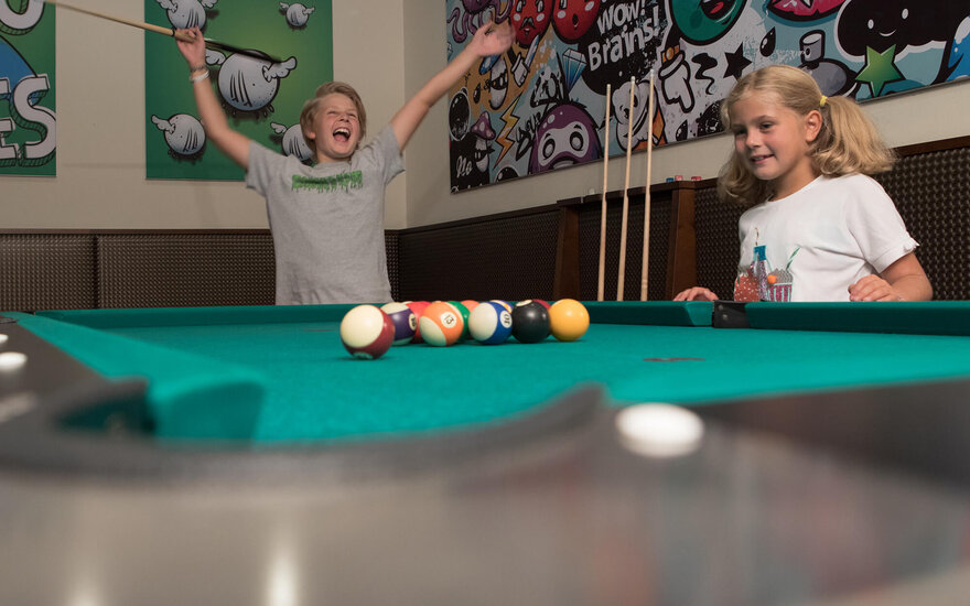 Wenn das Wetter mal nicht mitspielt, bietet der Alpenhof Hintertux jede Menge Alternativen, die garantiert keine Langeweile aufkommen lassen. Im großen Spielzimmer können sich die Kinder mit der Kletterwand und zahlreichen kreativen Spielen die Zeit vertreiben. Die Sporthalle lädt ein, Energie bei einer Runde Fußball oder auf der Sprossenleiter abzubauen. Die Teen-Lounge sorgt mit Billard, Kicker und Playstation für Spaß bei den größeren Kids. Ein 128 m² großes Hallenbad wartet auf alle Wasserratten, die sich nach Spaß und Entspannung sehnen. Während die Kinder im Wasser toben, können die Eltern im Familien-Spa bei einem Dampfbad oder in der Bio-Sauna entspannen.