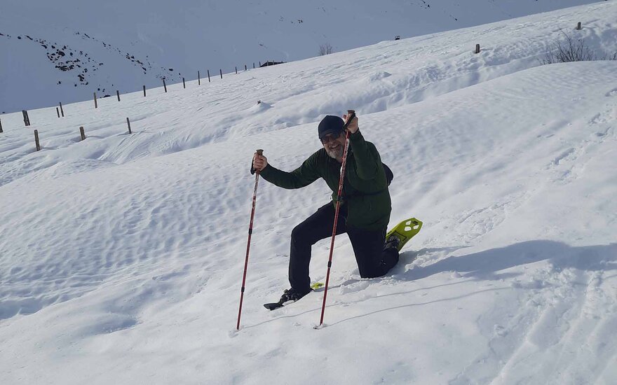 Bei einer Schneeschuhwanderung durch die Winterlandschaft rund um Hintertux können Sie abseits der bekannten Wege durch den Tiefschnee stapfen und besondere Momente in der Naturlandschaft genießen. Die weißen Berghänge und die verschneiten Gipfel strahlen Ihnen entgegen - schnallen Sie sich die Schneeschuhe an und starten Sie Ihre Wanderung durch die weiße Schneepracht. Auf breiten Sohlen unterwegs im Tuxertal, können Sie zwischen verschiedenen Routen wählen oder bei einer geführten Schneeschuhwanderung die Bergwelt gemeinsam mit einem erfahrenen Guide erkunden.