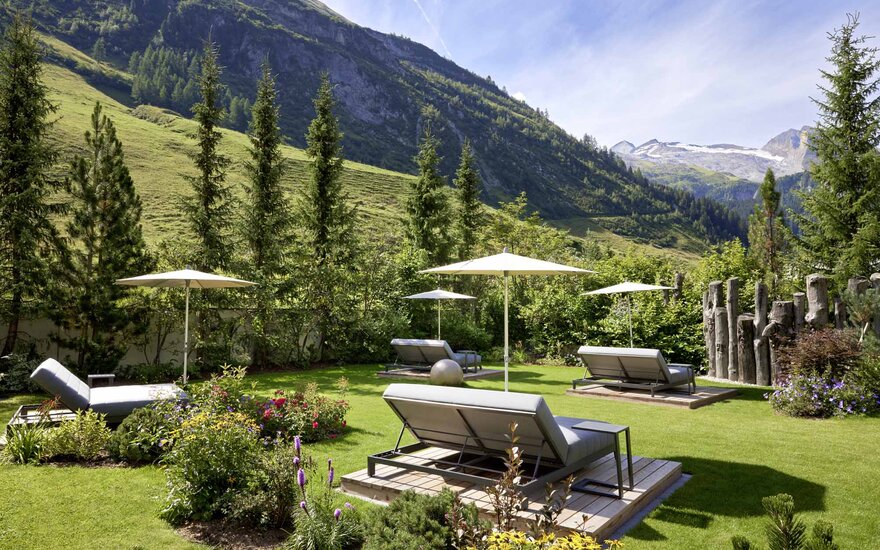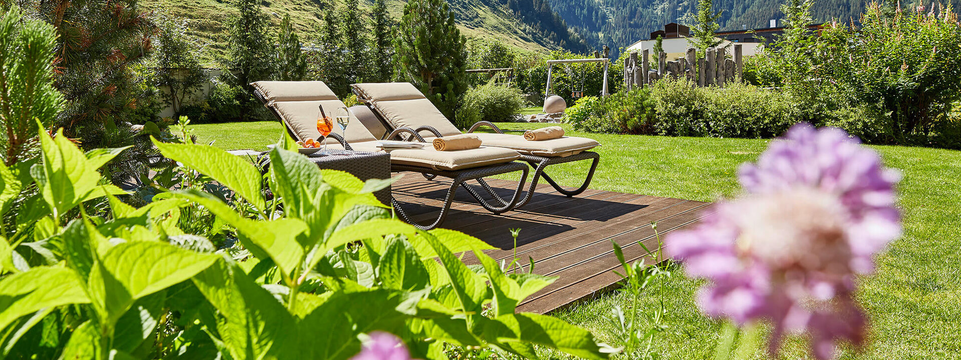 Auf 1.000 m² bietet der Alpengarten Raum zum Abschalten und Genießen. Bequeme Sonnenliegen, ein gepflegtes Umfeld und der Duft von Wald und Gras schaffen die perfekte Kulisse für Momente der Ruhe. Ob ein angeregtes Gespräch mit der Begleitung, ein gutes Buch oder ein kühles Getränk – hier finden Sie Ihren persönlichen Rückzugsort.